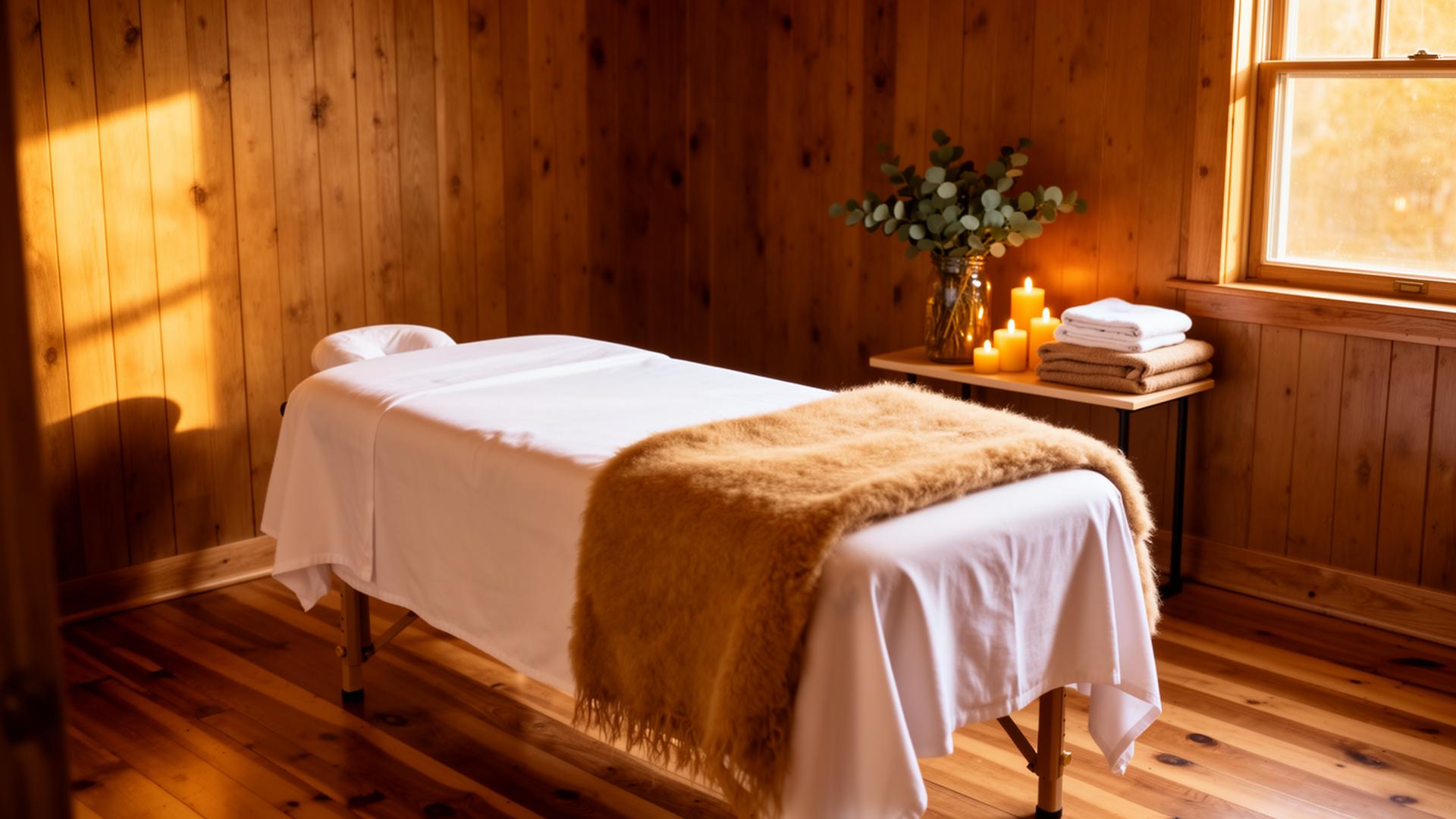 An hour of quiet, careful bodywork in a warm wood-paneled room. You leave slower than you came.